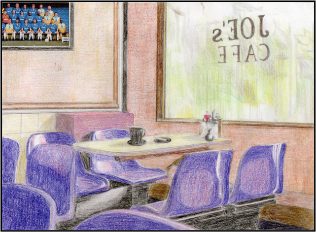 If I finished my proofreading night shift before Sophie left for the day, I’d sit in a café where I practised the noble art of making a mug of tea last a long time. Sometimes I’d stay on at the ad agency, slowly turning the pages of the reference books we used for checking spellings and place names; piles of dictionaries, atlases and encyclopaedias. There was even a Reader’s Digest World Atlas with its green fabric cover, the same edition as the one I got for passing the eleven plus in 1969 and now hopelessly out of date. I breathed its musty pages and toured the world in my mind’s eye, then started on Collins’ UK Road Atlas, the grey patches of conurbations and the white spaces in between, wishing I were there, not here.
